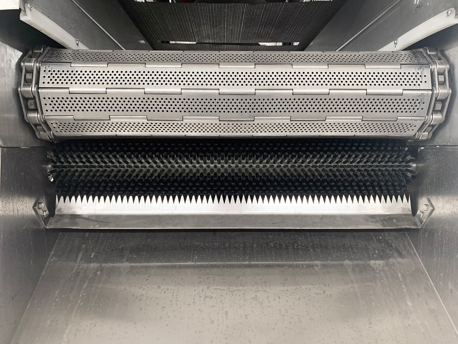 物料在網(wǎng)鏈輸送上運(yùn)動(dòng)同時(shí),純凈的高壓空氣在清洗槽的網(wǎng)鏈下產(chǎn)生強(qiáng)烈氣水泡,形成水浪,從而達(dá)到對(duì)中草藥等物料充分進(jìn)行清洗的目的。配套去雜去蟲機(jī)構(gòu),使漂浮物等隨水流從設(shè)備兩側(cè)流入到過濾網(wǎng)上,同時(shí)在物料輸出時(shí)在網(wǎng)鏈上方設(shè)有噴淋管,對(duì)物料進(jìn)行沖洗,可用作雙重清洗。
