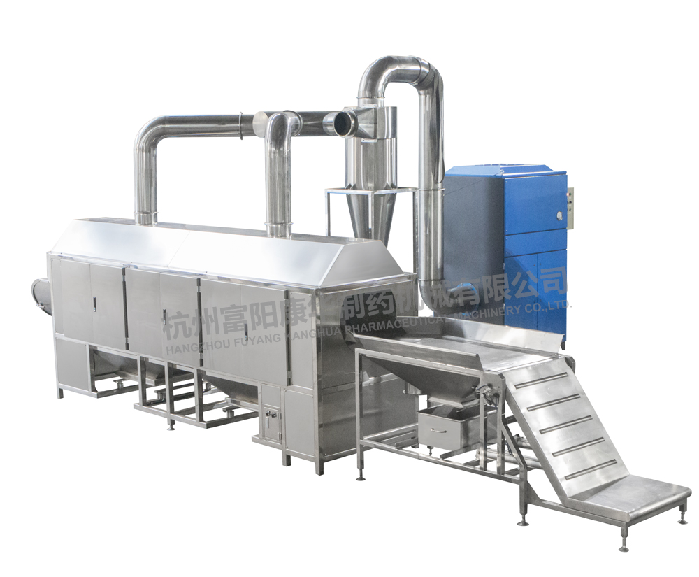 利用物料的自重、摩擦等原理,采用“不用水”的方式除去其附著在表面的雜物,泥沙,對于花草類藥材,具有良好的去灰除沙效果,避免了有效成分的流失(類似:干洗機)。