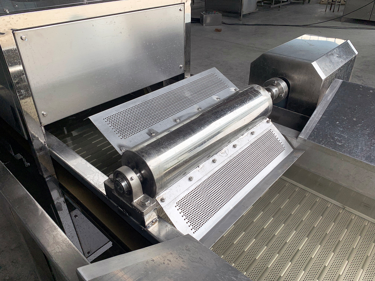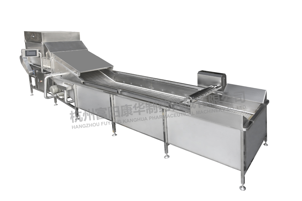 物料在網(wǎng)鏈輸送上運動同時,純凈的高壓空氣在清洗槽的網(wǎng)鏈下產(chǎn)生強烈氣水泡,形成水浪,從而達(dá)到對中草藥等物料充分進行清洗的目的。配套去雜去蟲機構(gòu),使漂浮物等隨水流從設(shè)備兩側(cè)流入到過濾網(wǎng)上,同時在物料輸出時在網(wǎng)鏈上方設(shè)有噴淋管,對物料進行沖洗,可用作雙重清洗。